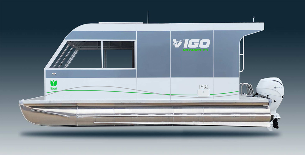 VIGO is focused on the ecologically friendly design, using NON-TOXIC, NON-POLLUTING and RECYCLABLE materials: mostly metal and metal composites (aluminum and stainless steel)! There is NO FIBERGLASS, NO PVC/VINYL, NO POLYSTYRENE! The design is ELECTRIC PROPULSION ready, and optimized for low power, low emission, high efficiency outboards!